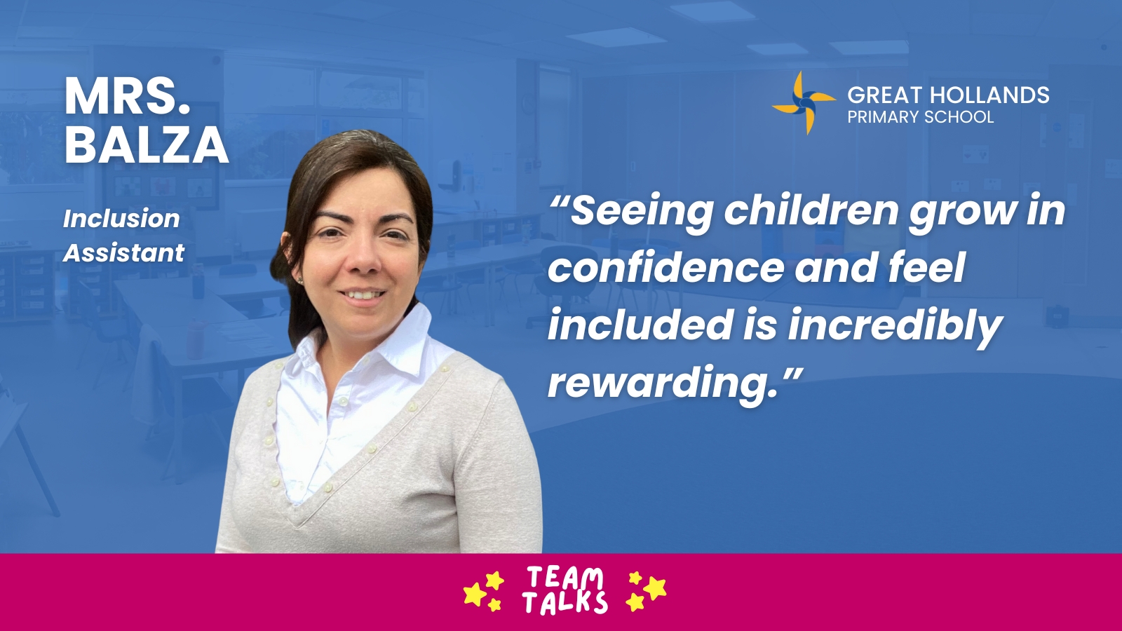 Welcome to our Team Talk with Beatriz Balza, Inclusion Assistant at Great Hollands Primary School.