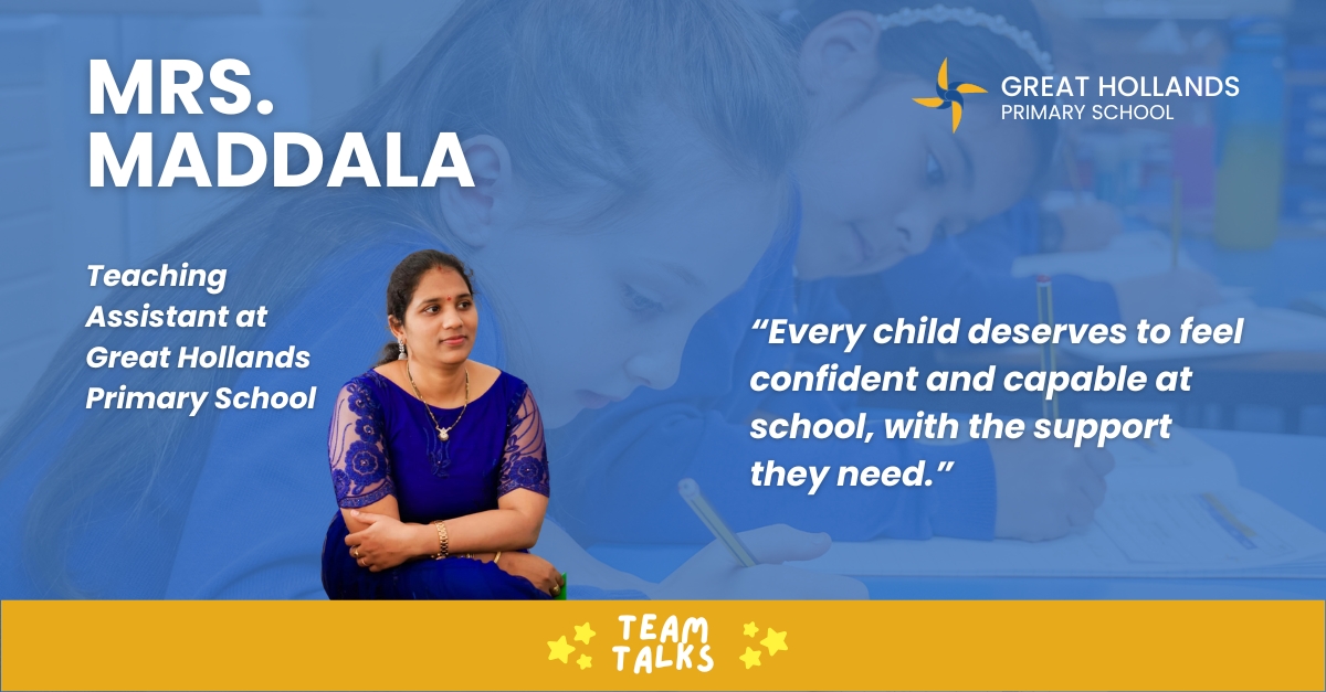 Welcome to our Team Talk with Suneetha Maddala, Teaching Assistant at Great Hollands Primary School.