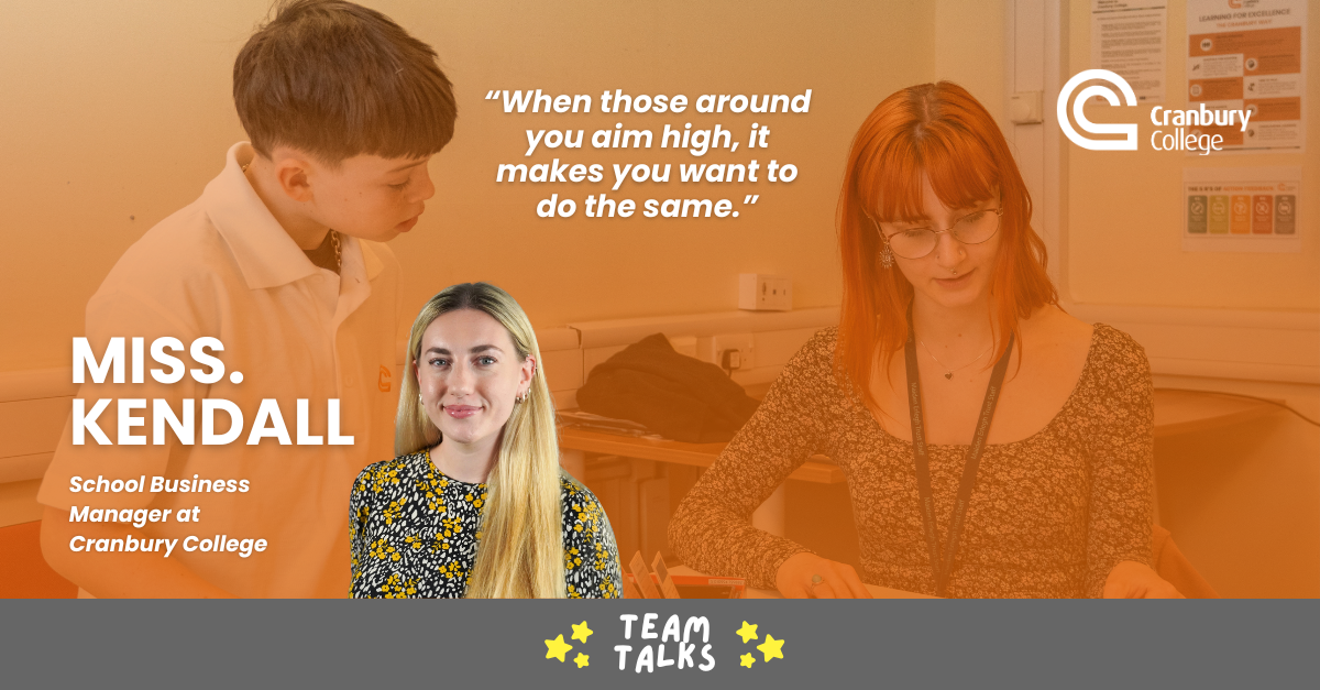 Abbie Kendall is School Business Manager at Cranbury College, where she leads on operational systems and compliance to ensure the school runs effectively day to day. Her role sits behind the scenes but plays a key part in supporting staff and enabling students to focus on their learning